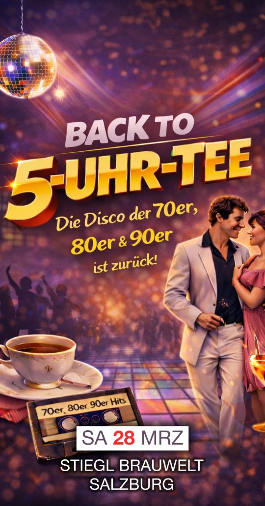 Der perfekte Start in die Nacht: Kommt zur 5-Uhr-Party und läutet mit uns die legendäre Back to the 90’s Party der Stiegl-Brauwelt ein. Gute Musik, beste Stimmung und feiern wie früher – nur besser!